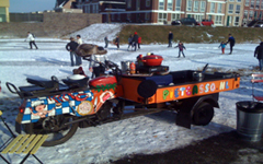 Vanuit de door de Amersfoortse kunstenaar Norbertus beschilderde gemotoriseerde bakfiets bereidt Pietcasso op ludieke en onderhoudende wijze heerlijke creaties.